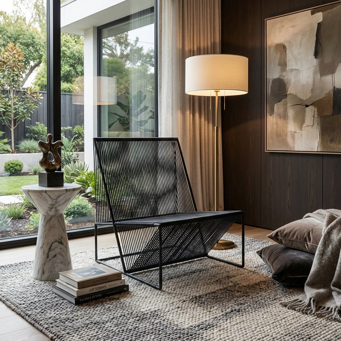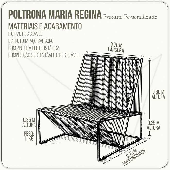 Inspirada na tradicional cadeira de fio brasileira, a poltrona apresenta uma releitura contemporânea que valoriza a memória afetiva, a identidade cultural e a permanência ao longo do tempo